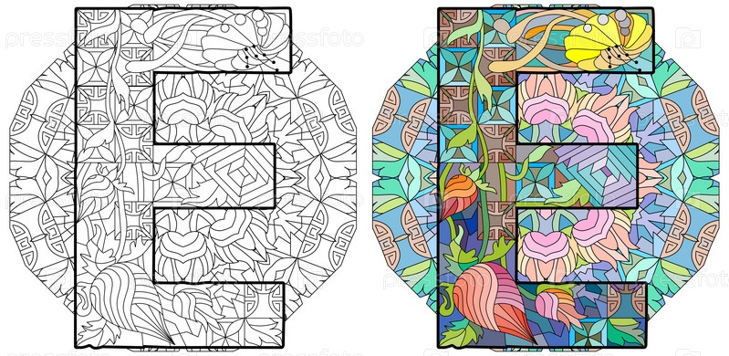 Zentangle стилизованный алфавит - буква E на мандале. векторная иллюстрация для окраски. этнический шаблон