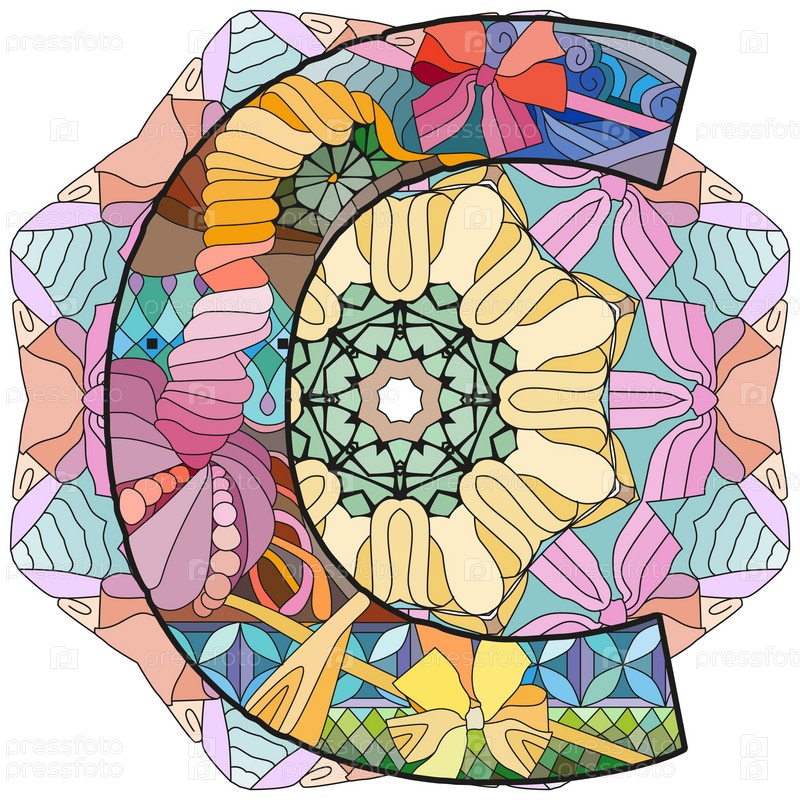 Zentangle стилизованный алфавит - буква C на мандале. векторная иллюстрация. этнический шаблон