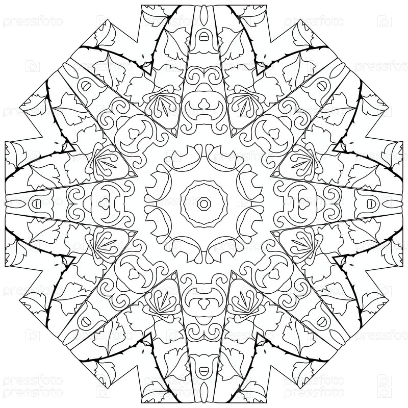 Круговой орнамент ручной работы для раскраски страницы