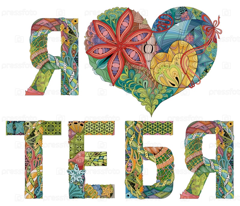 Художественный дизайн ручной росписи. Нарисованные от руки слова иллюстрации Я ЛЮБЛЮ ТЕБЯ на русском языке для футболки и других украшений