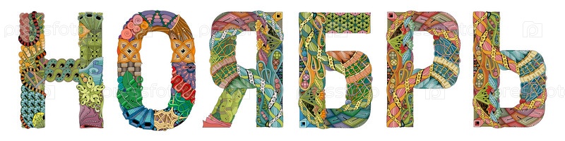 Художественный дизайн ручной росписи. Нарисованное рукой слово ноябрь на русском языке для футболки и других украшений
