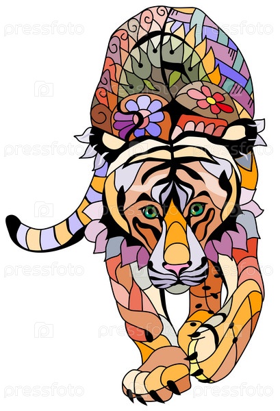 Тигр в стиле зентангл для дизайна футболок, татуировок и других украшений