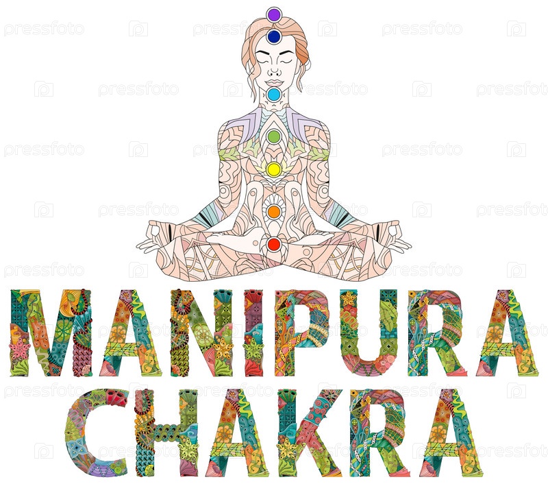 Художественный дизайн ручной росписи. Нарисованные вручную слова иллюстрации Манипура Чакра для футболки и других украшений