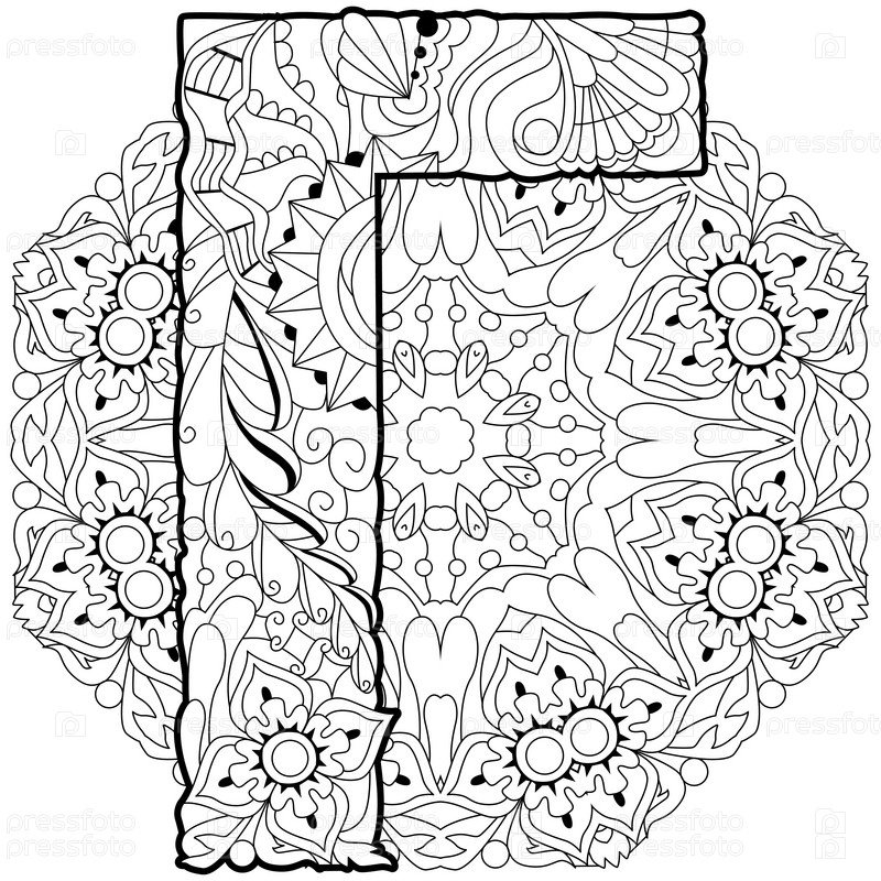 Русский алфавит кириллическая заглавная буква G на мандале. векторная иллюстрация для окраски