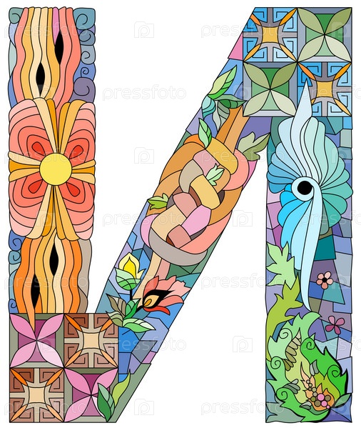 Художественный дизайн рукописных росписей.Буква I кириллический зэнтангл объект