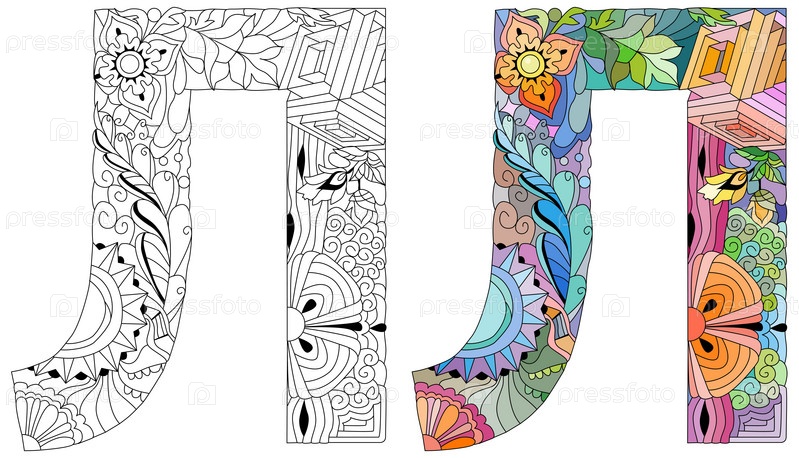 Русский алфавит кириллическая заглавная буква L. Векторальная иллюстрация Набор цветов и контуров