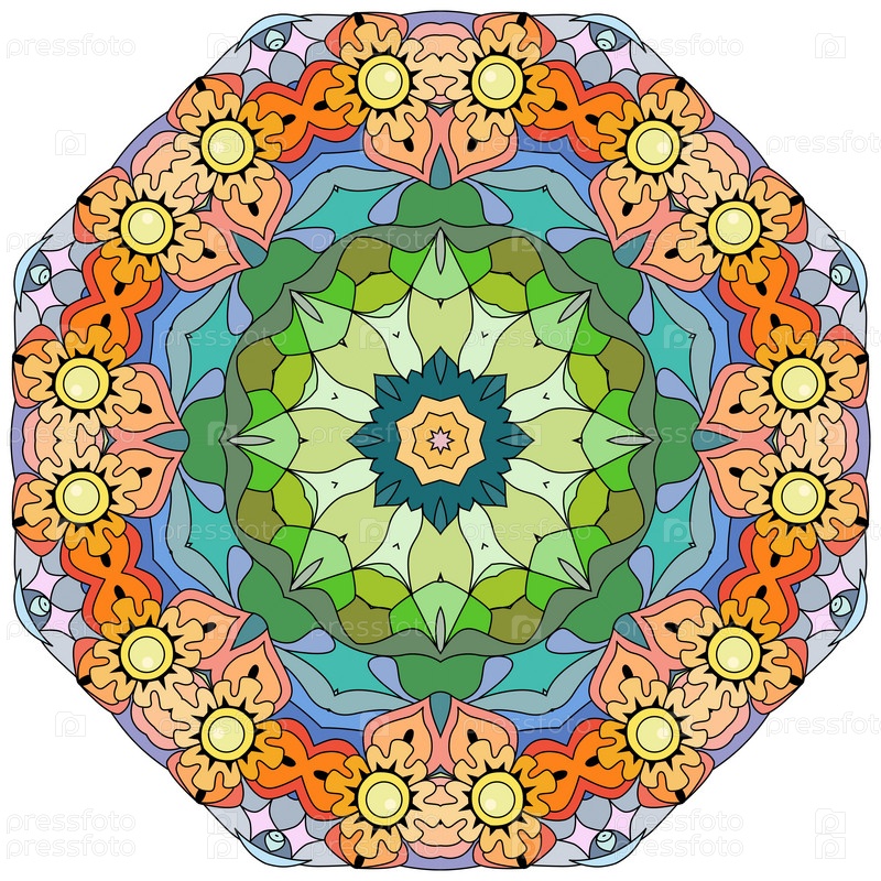 Декоративный круглый орнамент. Необычная форма цветка. Восточный вектор, схемы антистрессовой терапии. Переплетение элементов дизайна. Вектор логотипов йоги