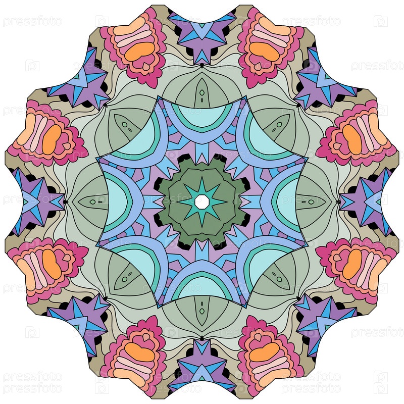 Декоративный круглый орнамент. Необычная форма цветка. Восточный вектор, схемы антистрессовой терапии. Переплетение элементов дизайна. Вектор логотипов йоги