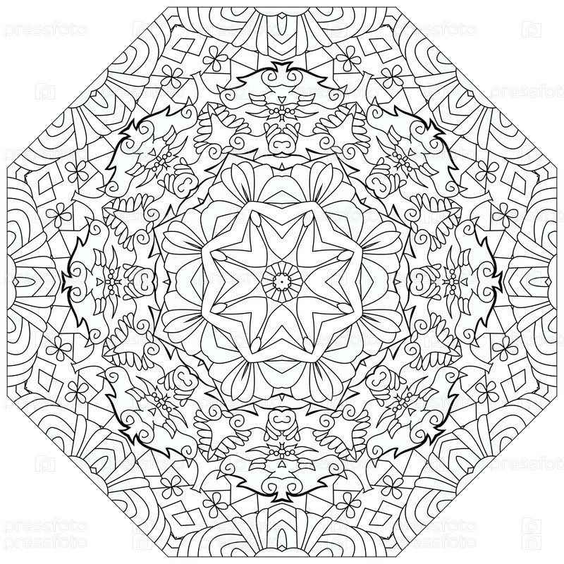 Круговой орнамент ручной работы для раскраски страницы