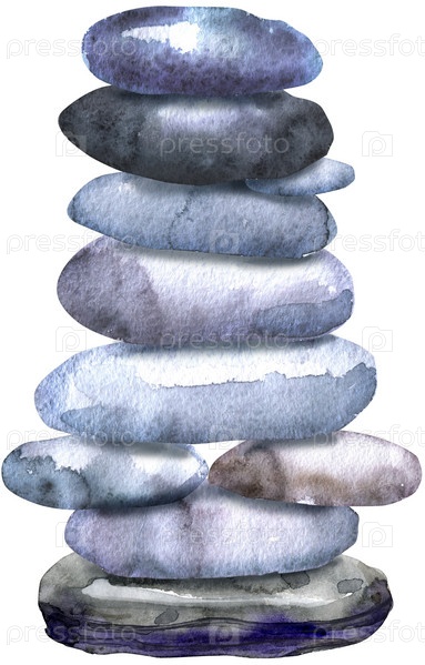 Ручной обращается изолированная красочная акварельная куча камней на белом фоне