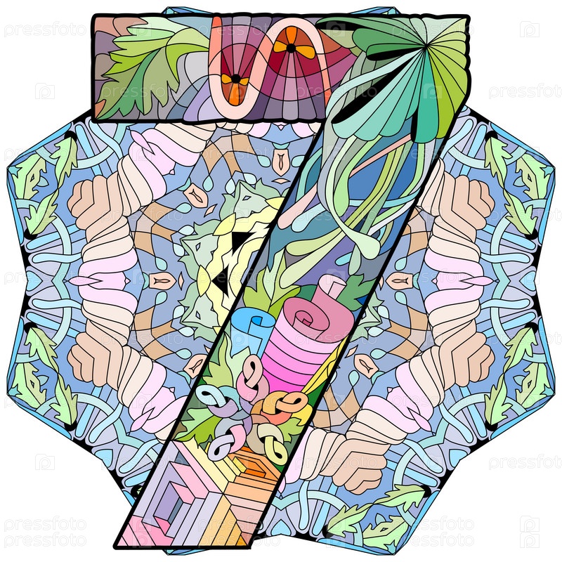 7-значный винтажный шрифт на мандале. Дизайн гравировки. Векторная иллюстрация