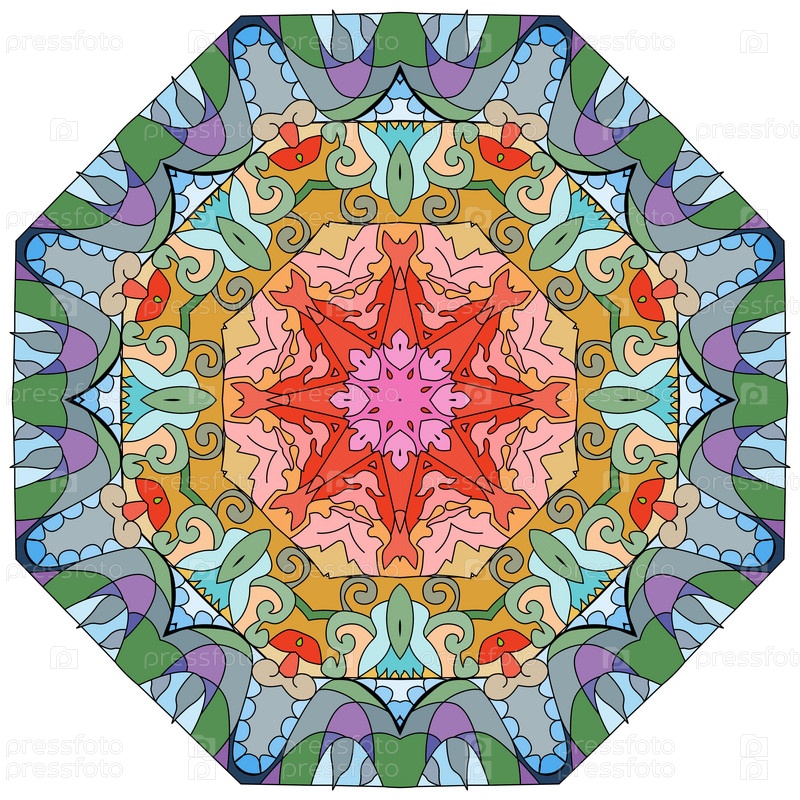 Декоративный круглый орнамент. Необычная форма цветка. Восточный вектор, схемы антистрессовой терапии. Переплетение элементов дизайна. Вектор логотипов йоги
