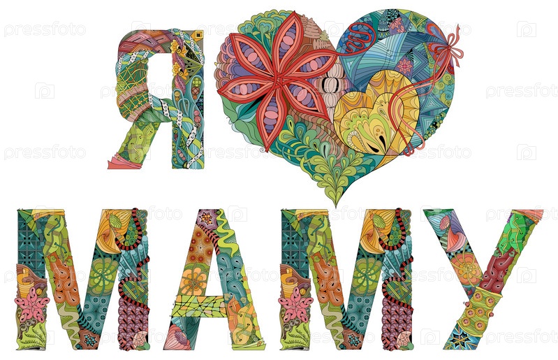 Художественный дизайн ручной росписи. Нарисованные вручную слова иллюстрации Я ЛЮБЛЮ МАМУ на русском языке для футболки и других украшений