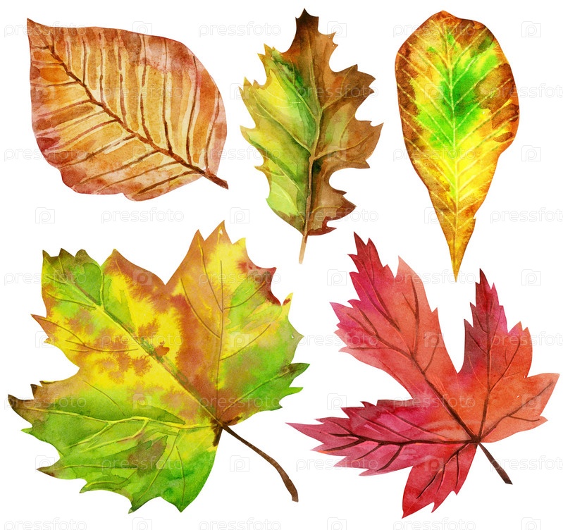 Акварельные иллюстрации осенних листьев для украшения