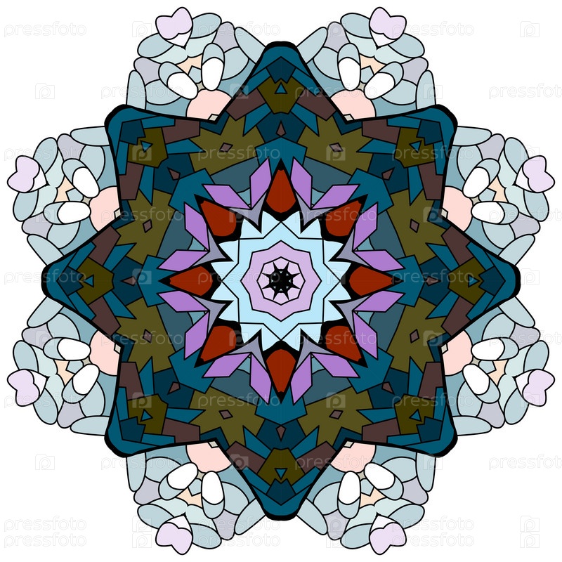 Декоративные круглые украшения. Необычная форма цветка. Восточный вектор, схемы антистрессовой терапии. Переплетение элементов дизайна. Вектор логотипов йоги