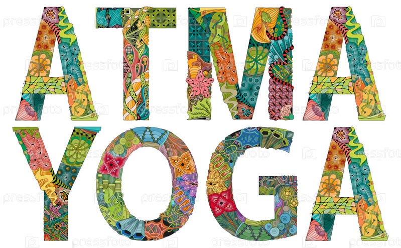 Художественный дизайн ручной росписи. Ручной рисунок слова АТМА ЙОГА для футболки и других украшений