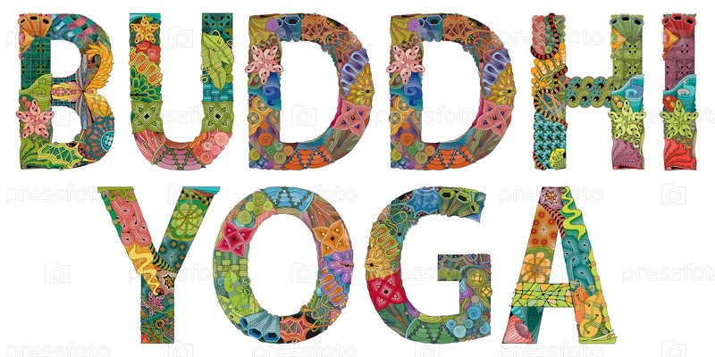 Художественный дизайн ручной росписи.Ручное изображение слов BUDDHI YOGA для футболок и других украшений