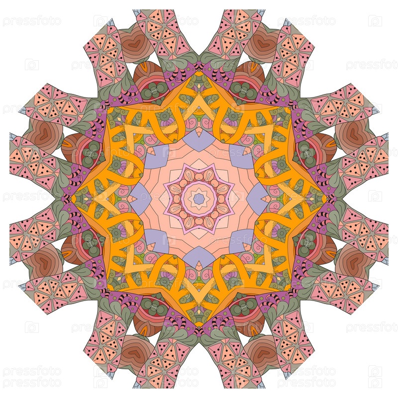 Декоративные круглые украшения. Необычная форма цветка. Восточный вектор, схемы антистрессовой терапии. Переплетение элементов дизайна. Вектор логотипов йоги
