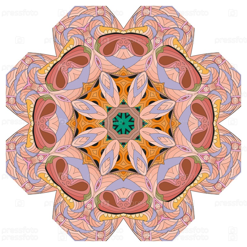 Декоративные круглые украшения. Необычная форма цветка. Восточный вектор, схемы антистрессовой терапии. Переплетение элементов дизайна. Вектор логотипов йоги