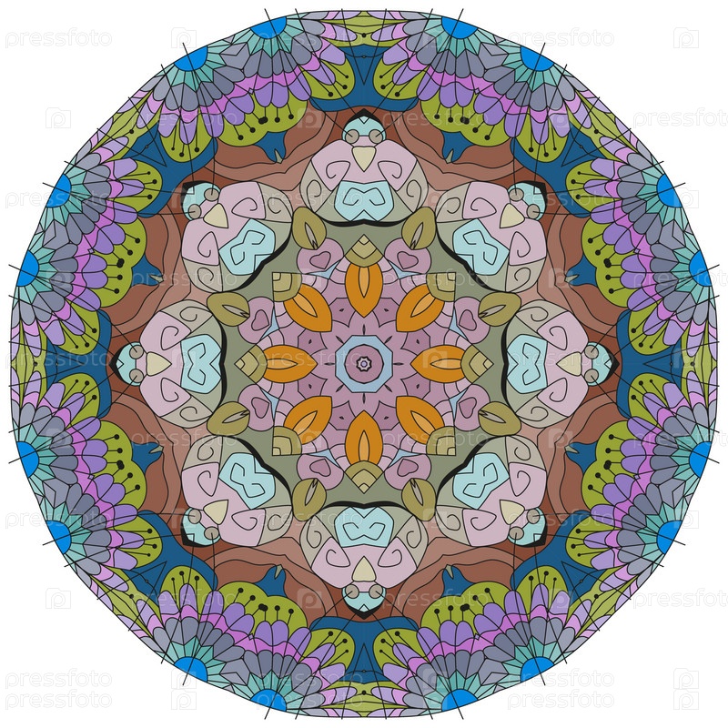 Декоративные круглые украшения. Необычная форма цветка. Восточный вектор, схемы антистрессовой терапии. Переплетение элементов дизайна. Вектор логотипов йоги