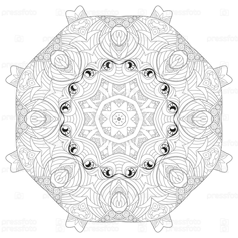 Декоративные круглые украшения. Необычная форма цветка. Восточный вектор, схемы антистрессовой терапии. Переплетение элементов дизайна