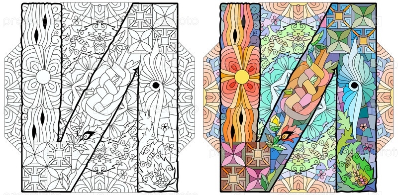 Кириллическая заглавная буква I русского алфавита на мандале для окраски. векторная иллюстрация