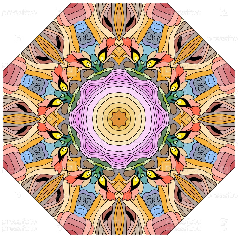 Декоративный круглый орнамент. Необычная форма цветка. Восточный вектор, схемы антистрессовой терапии. Переплетение элементов дизайна. Вектор логотипов йоги