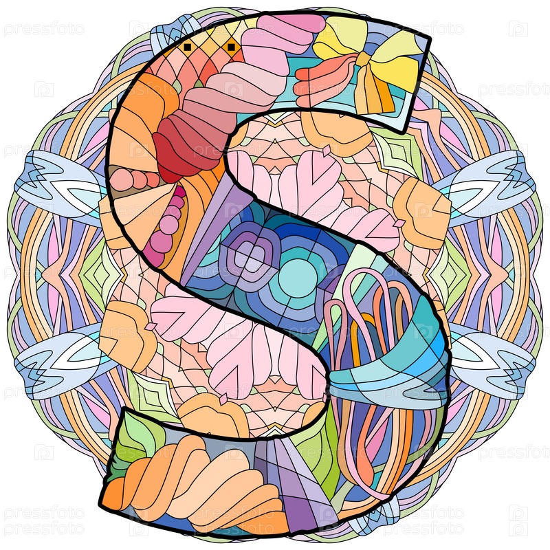 Zentangle стилизованный алфавит - буква S на мандале. векторная иллюстрация. этнический шаблон