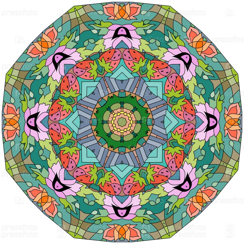 Декоративный круглый орнамент. Необычная форма цветка. Восточный вектор, схемы антистрессовой терапии. Переплетение элементов дизайна. Вектор логотипов йоги