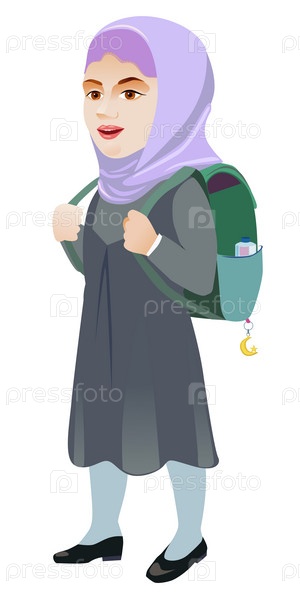 Радостная мусульманка спешит в школу