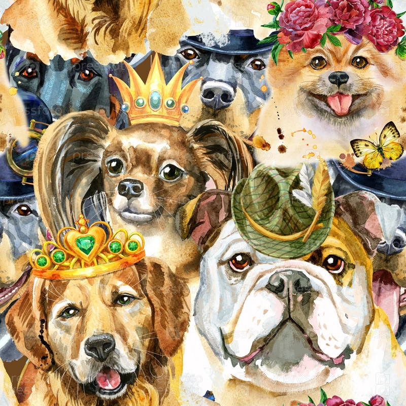 Акварель бесшовный рисунок собак на белом фоне