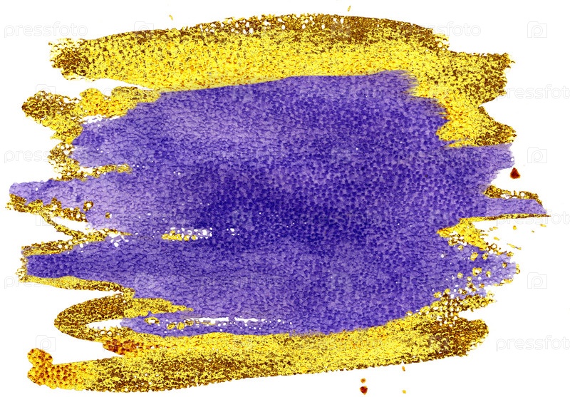 Фиолетовый и золотой акварельный круг на белом фоне