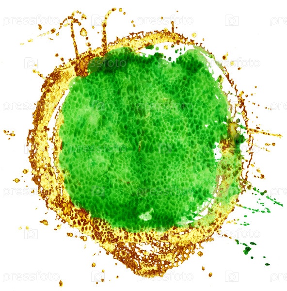 Цветной акварельный фон. Зеленый и золотой круг