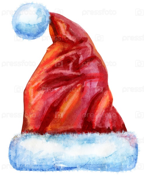 Рождественская красная шапка Санта-Клауса, акварельная иллюстрация