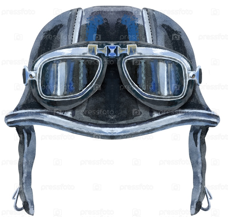 Акварельный черный байкерский шлем с солнцезащитными очками с металлическими вставками