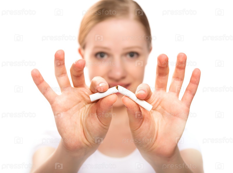 Женщина ломает сигарету. Концепция бросания курить