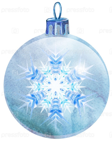 Акварель Рождественский белый шар со снежным озером на белом фоне