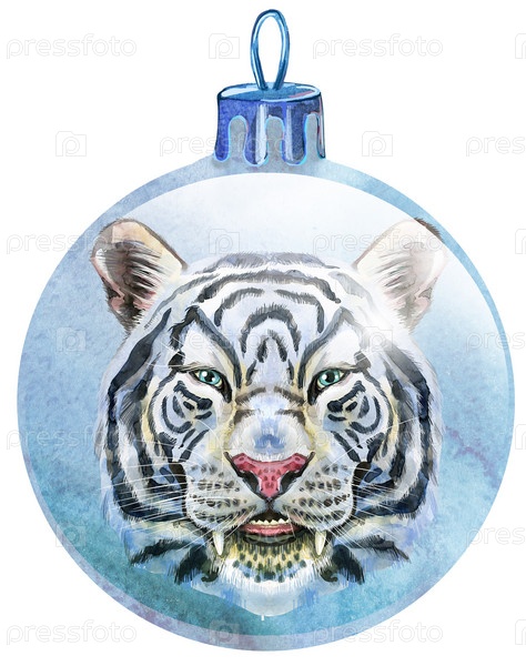 Акварель белый Рождественский бал с тигром, изолированные на белом фоне