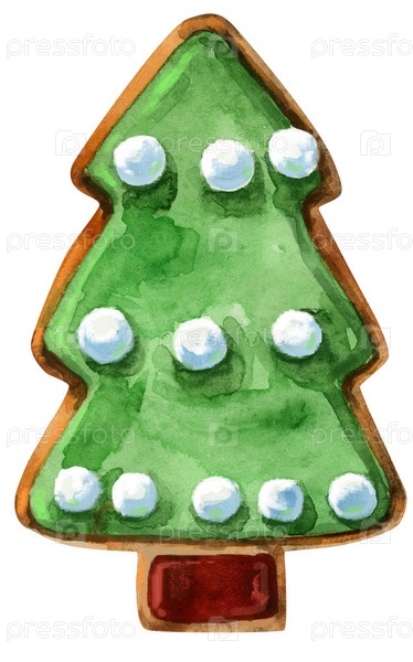 Акварельные рождественские пряники. Ручная роспись имбирных пряников Рождественская елка, изолированные на белом фоне. Для дизайна, фона или печати