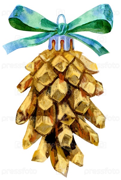 Акварель новогоднее украшение, изолированные на белом фоне