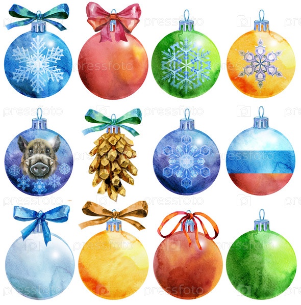 Set2 акварельный финиковый шар с изображением свиньи и снежинки. карта для вашего творчества