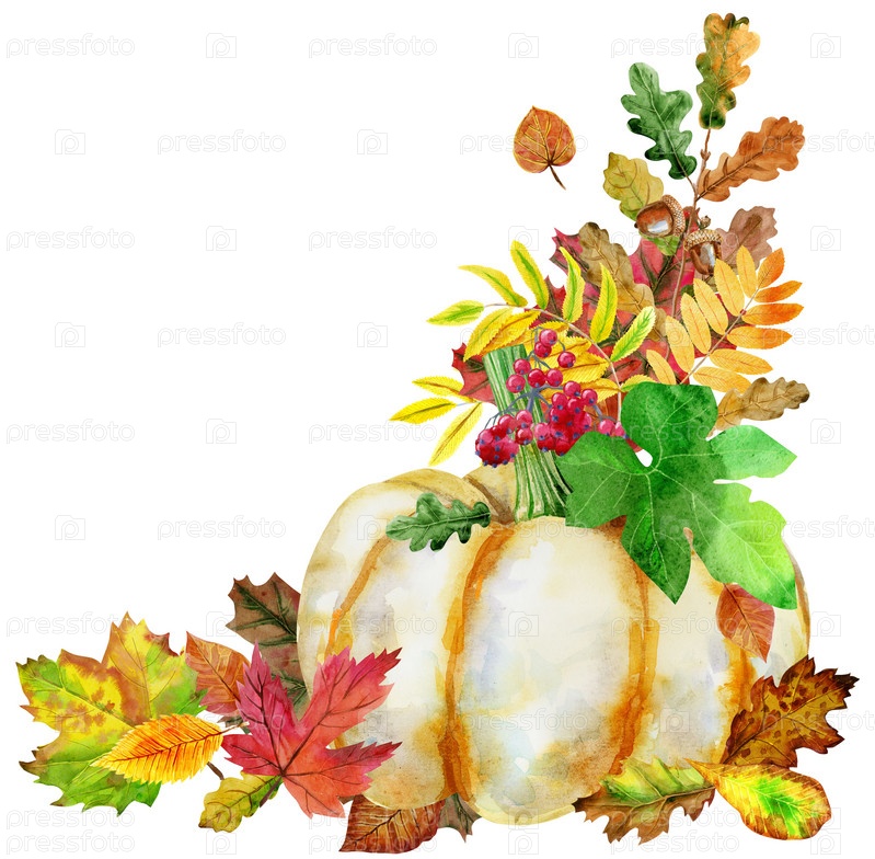 Угловая композиция из тыквы и осенних листьев