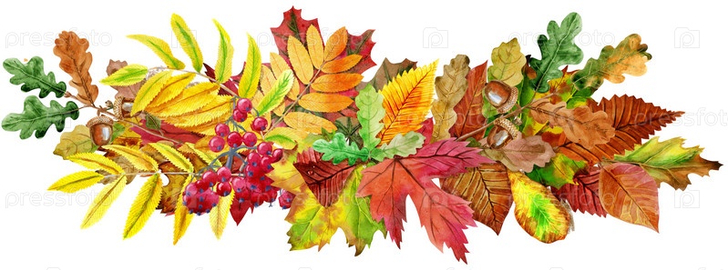 Осенний сезон цветочная рамка в стиле акварели: красочные оранжево-желтые бордовые красные осенние листья лесные кленовые ветки ягоды