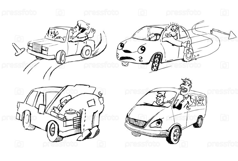 Четыре разные машины и люди в необычных ситуациях