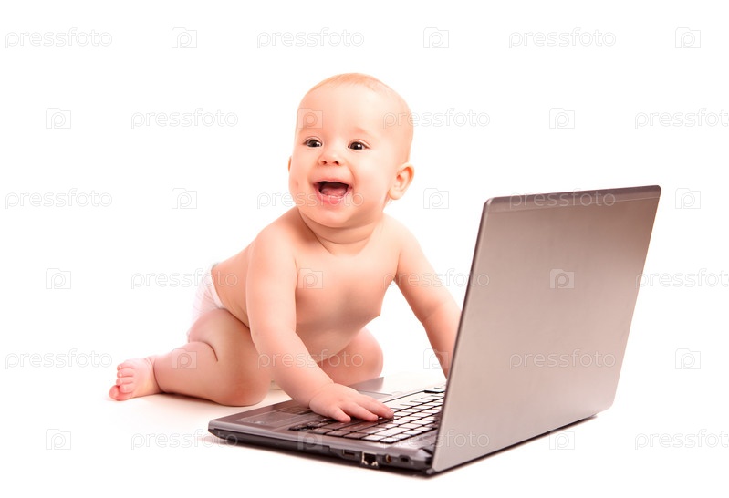 Ребенок и ноутбук, изолированные