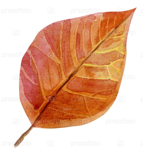 Ручная роспись акварелью и кистью на бумаге - красивый красный и желтый осенний лист