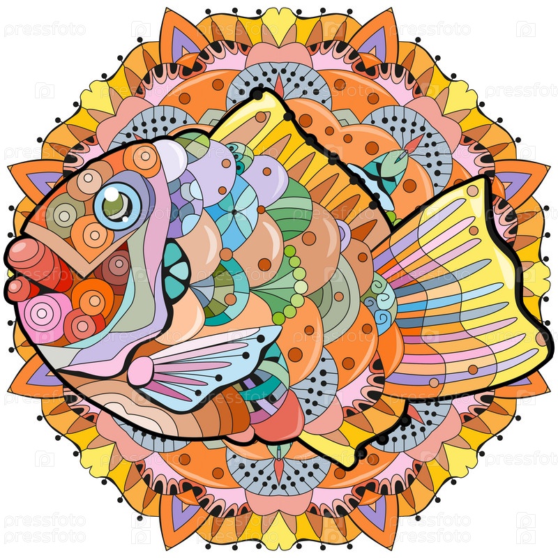 Зентангл Тайяки в стиле мандалы для дизайна футболок, татуировок и других украшений