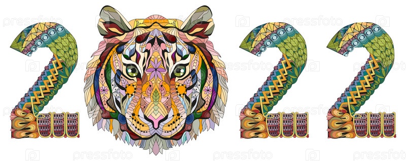 Нарисованный вручную тигр номер 2022 для футболки и других украшений