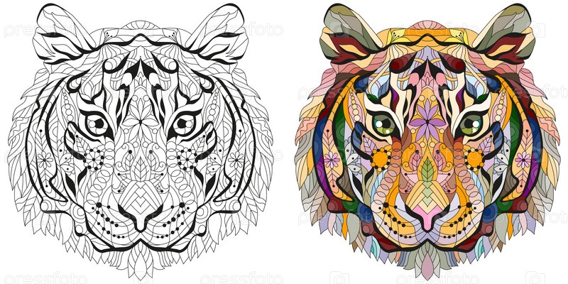 Голова тигра в стиле зентангл для дизайна футболки, татуировки и других украшений