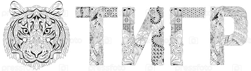 Художественный дизайн ручной росписи. Ручной рисунок слова тигр на русском языке для футболки и других украшений